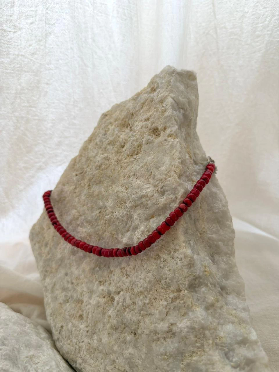 Collar de corales con terminaciónes de hilo y eslabones bañados.