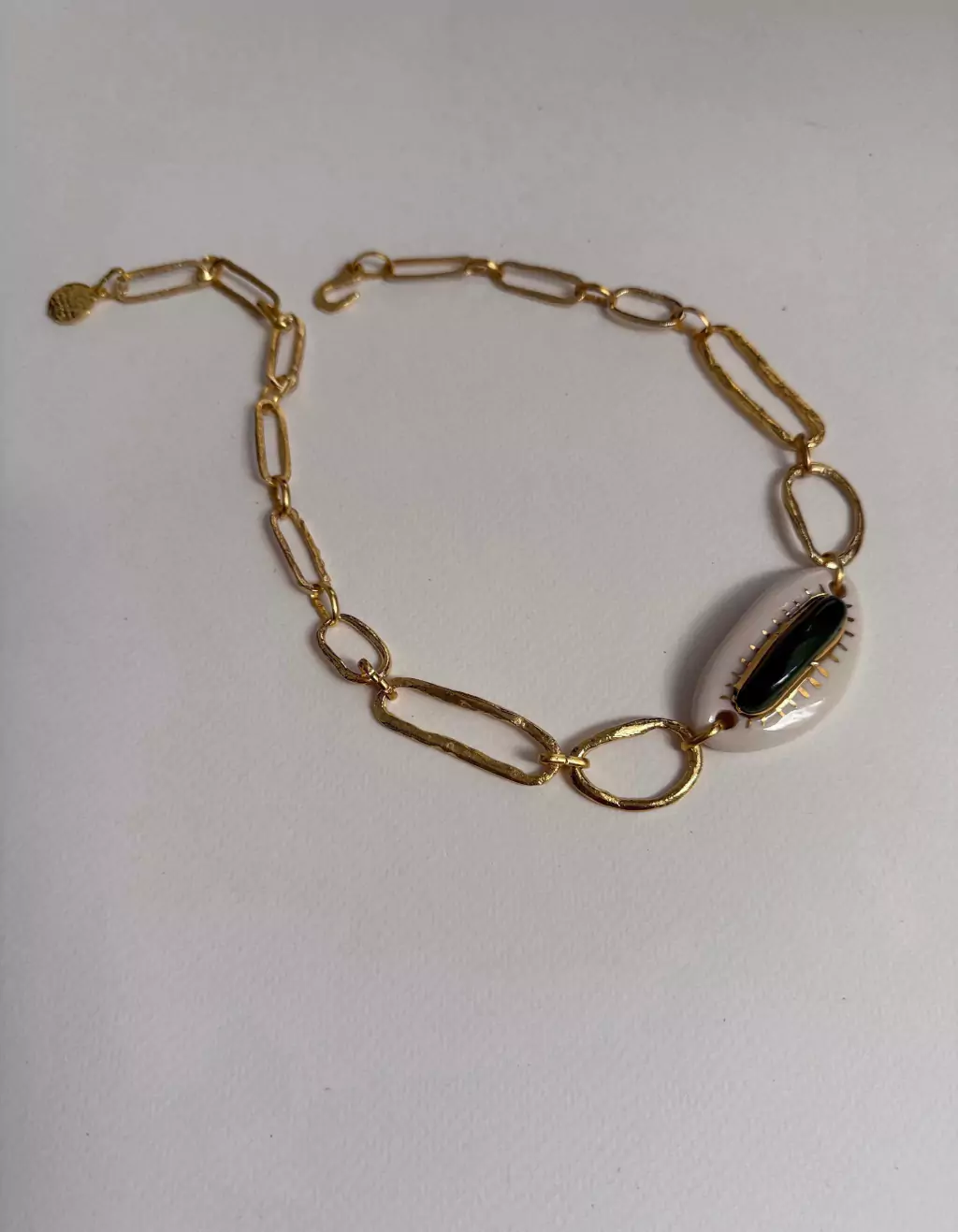 Collar de cadena bañada en oro con dije de cerámica.