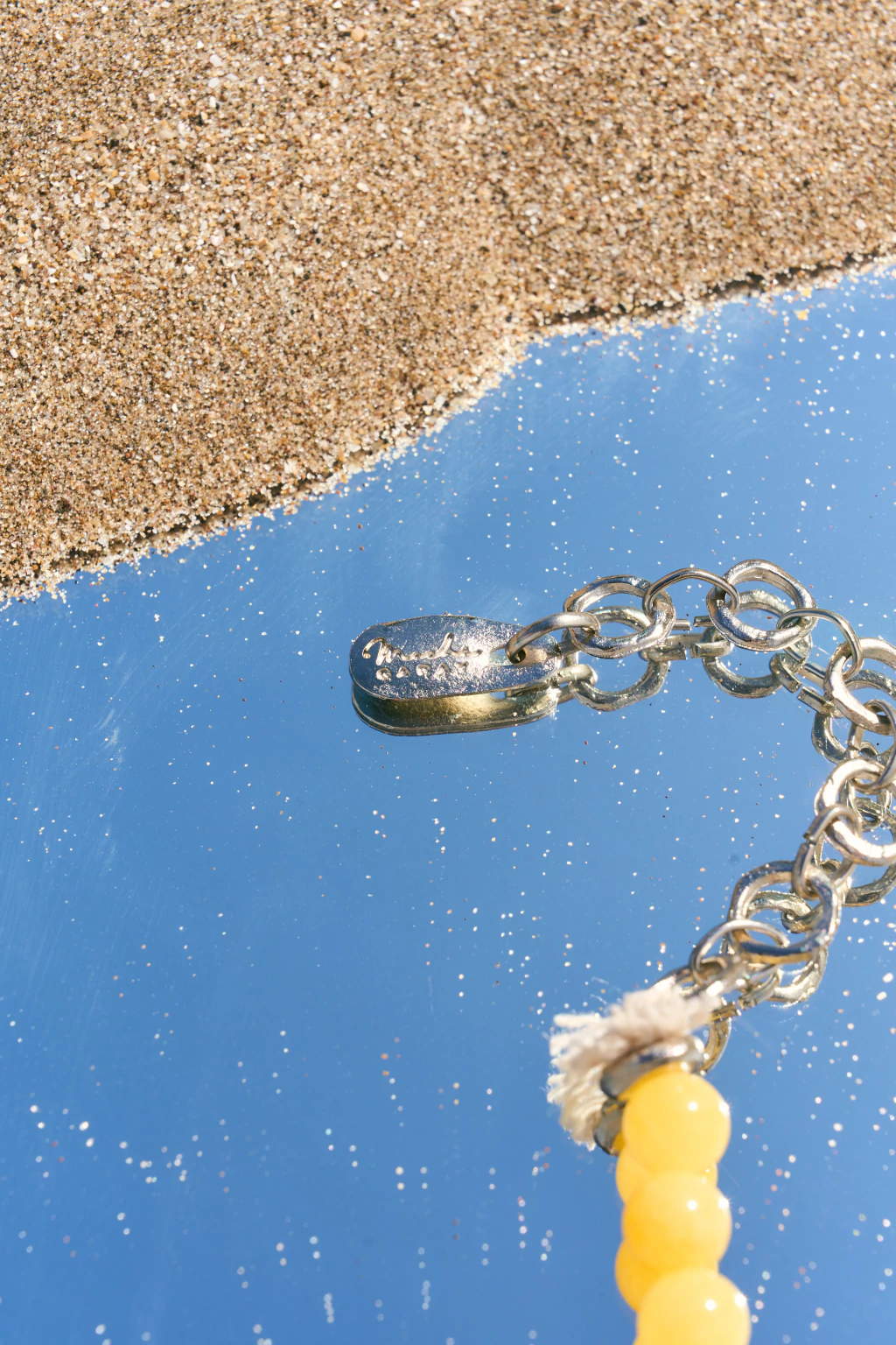 Collar de piedras reconstituidas con eslabones bañados y dije central de cerámica.