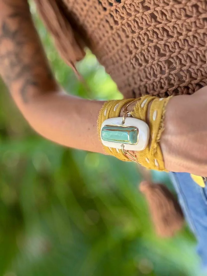 Se puede elegir el color del dije de cerámica y de la tela.
