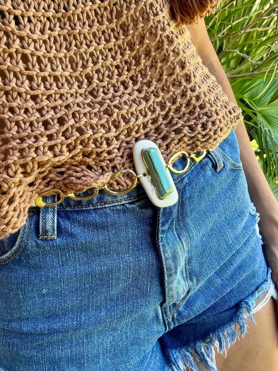 Collar de tela con eslabones y dije central de cerámica.